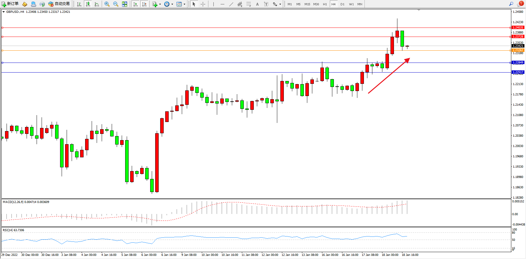 交易策略:1.23262上方看涨,目标1.23728、1.24035