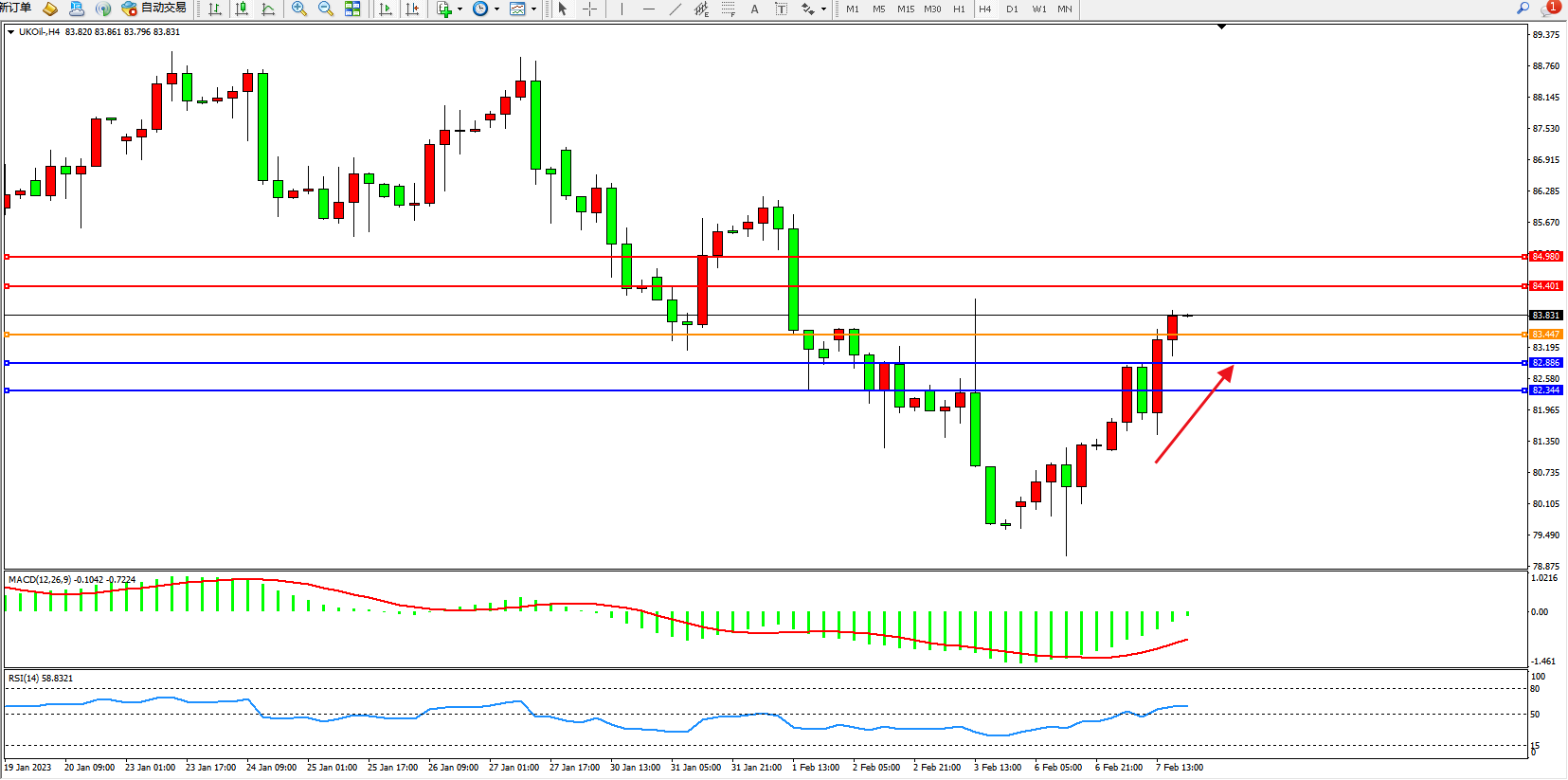 4小时图看:多头动力维持震荡上扬,短期看涨态势良好,市场多头情绪有继续向上移动态势,MACD指标处于空头区域维持震荡上移至0轴线附近徘徊,RSI指标处于50均衡线上側弱势整理;