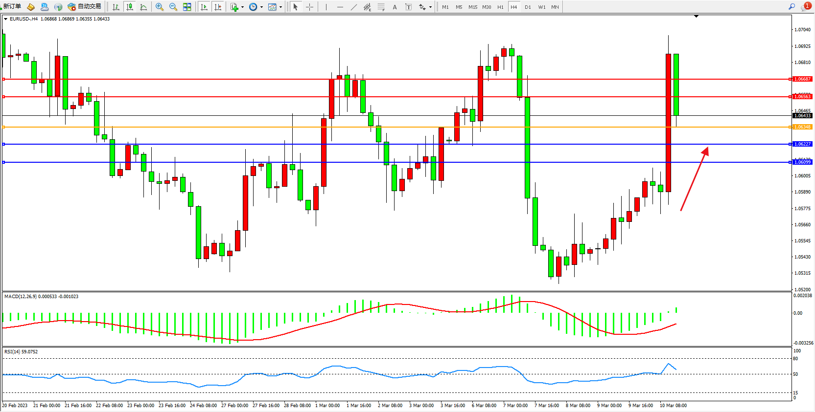 交易策略:1.06348上方看涨,目标1.06563  1.06687