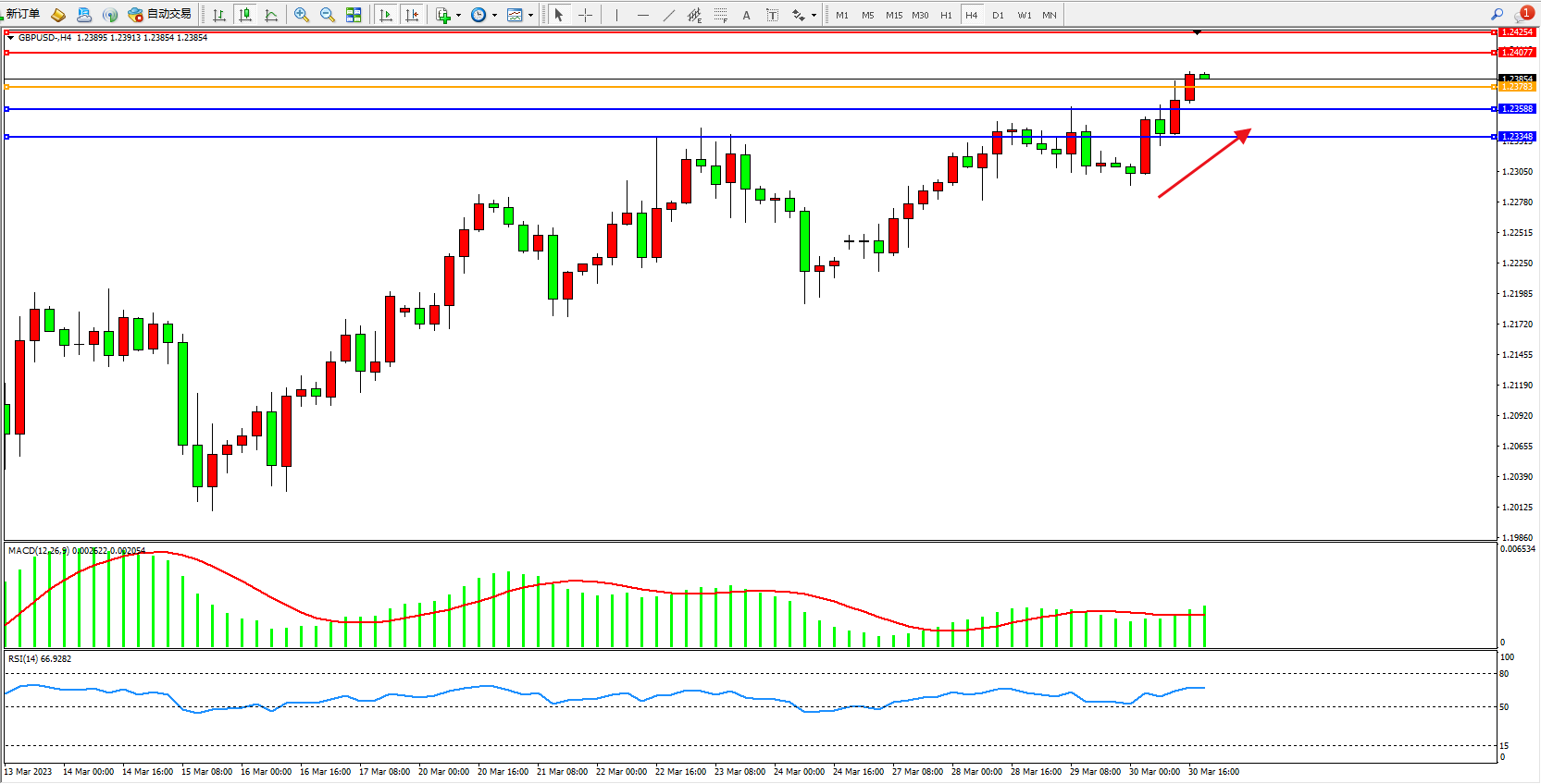 交易策略:1.23783上方看涨,目标1.24077  1.24254