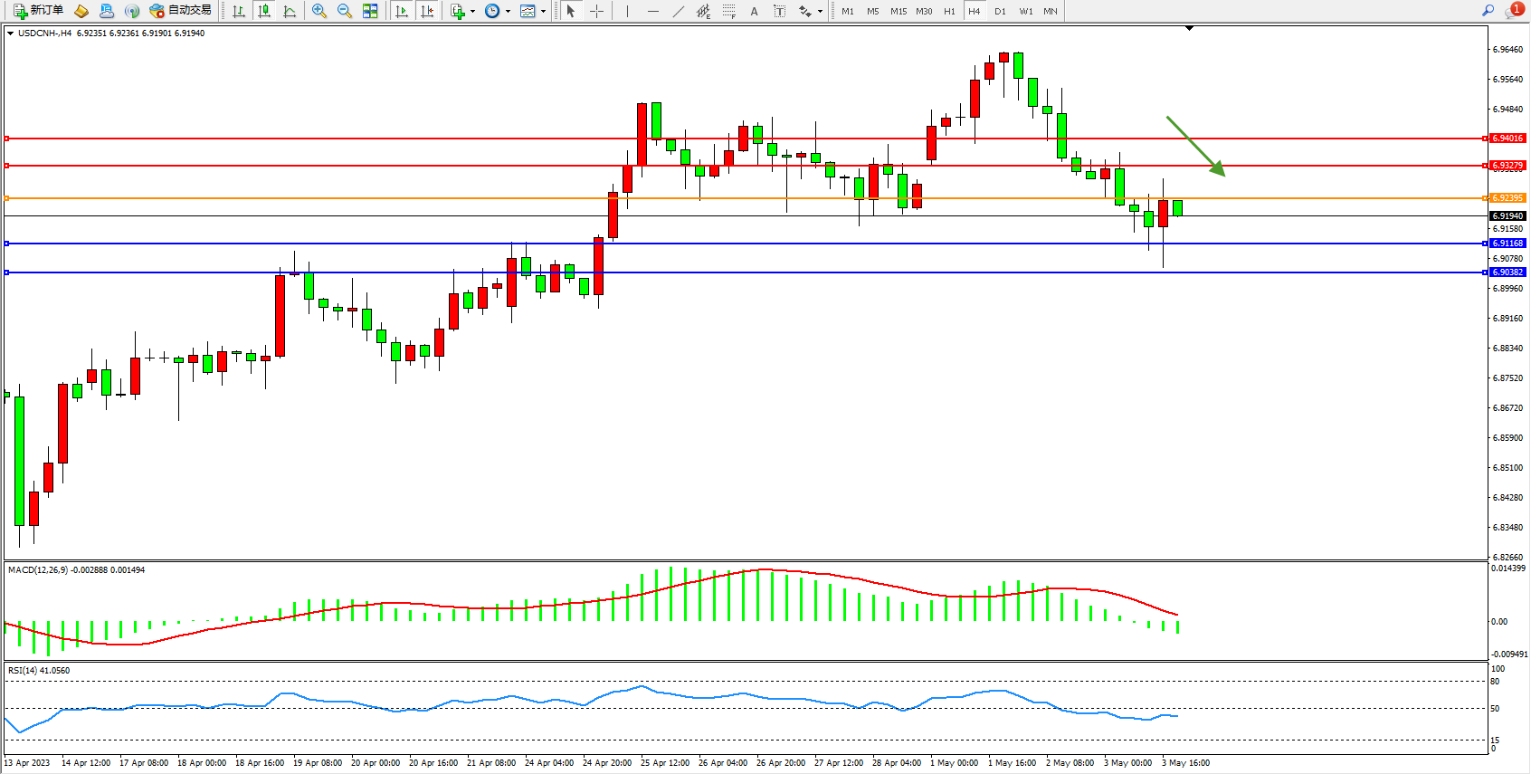 交易策略:6.92395下方看跌,目标6.91168  6.90382