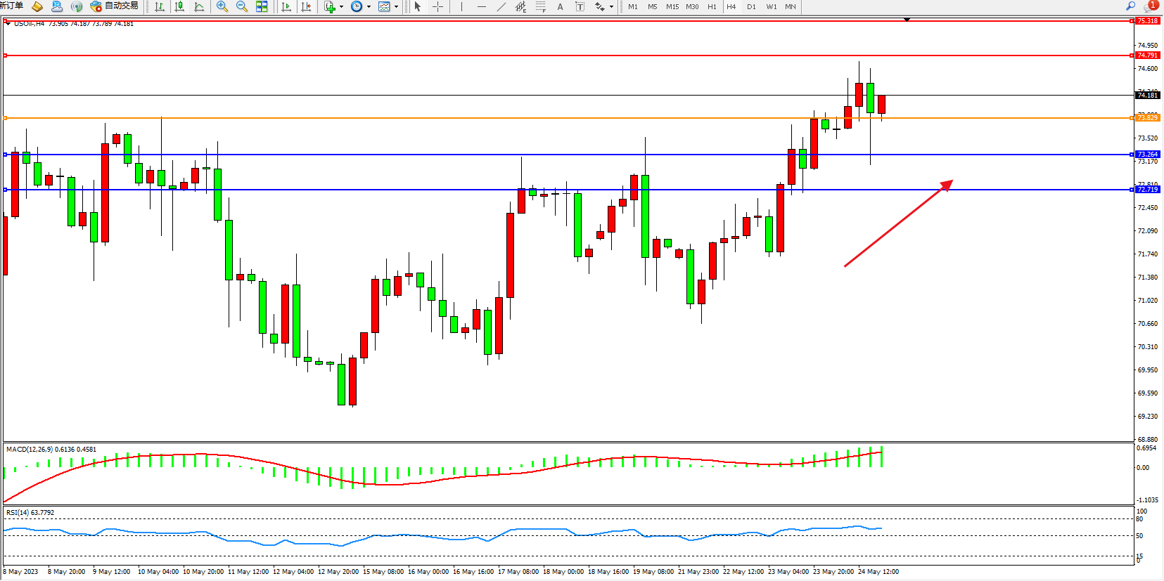 原油维持74.181附近震荡,美国至5月19日当周EIA俄克拉荷马州库欣原油库存 176.2万桶,前值146.1万桶。美国至5月19日当周EIA原油库存 -1245.6万桶,预期77.5万桶,前值504万桶。