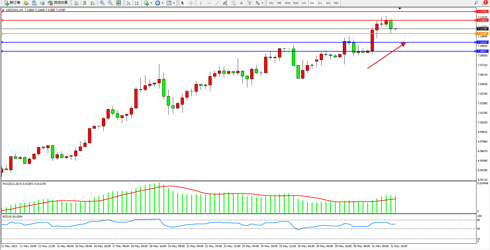 备选策略:7.11187上方看涨,目标7.12823  7.13901