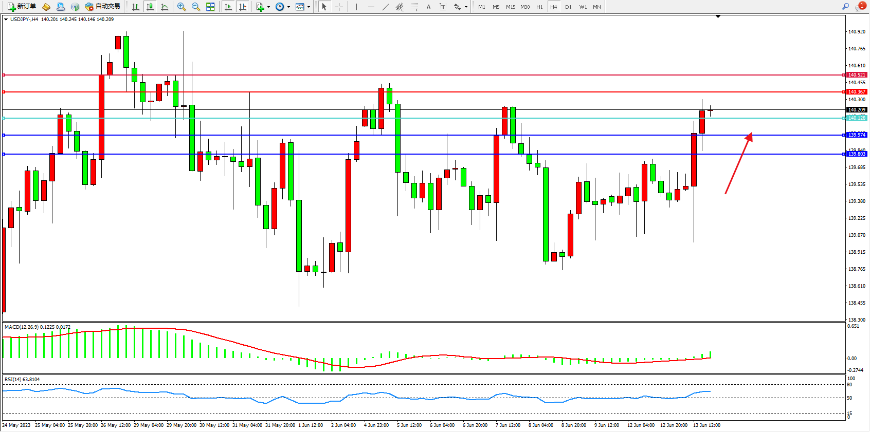阻力位:140.367 140.521