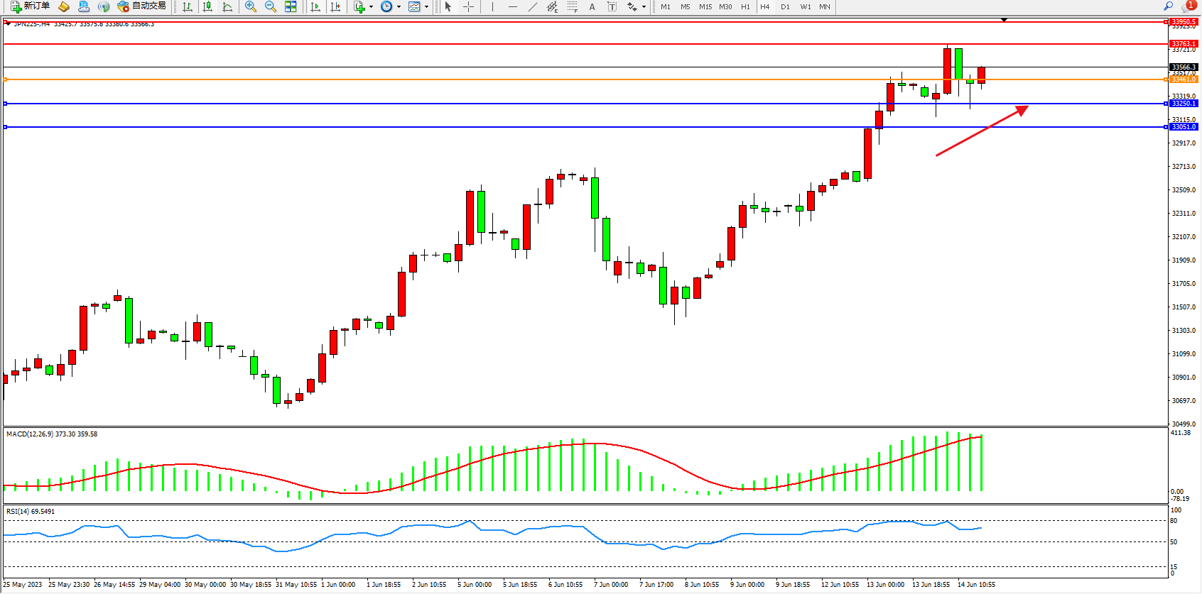 日经225指数6月14日(周三)收盘上涨498.85点,涨幅1.51%,报33517.50点。日经站上33500点并已连续上涨4日。盘中一度涨近2%,续创1990年泡沫经济破灭后的新高(33665.52点)。有市场人士认为,日经225指数年内可能会突破35000点。东证指数TOPIX涨1.31%报2294.53点,东证行业股价指数普遍上涨,其中东证TOPIX-17铁钢与非铁金属指数上涨3.85%,东证TOPIX-17汽车运输机指数上涨4.01%,东证TOPIX-17医药品指数下跌0.98%。