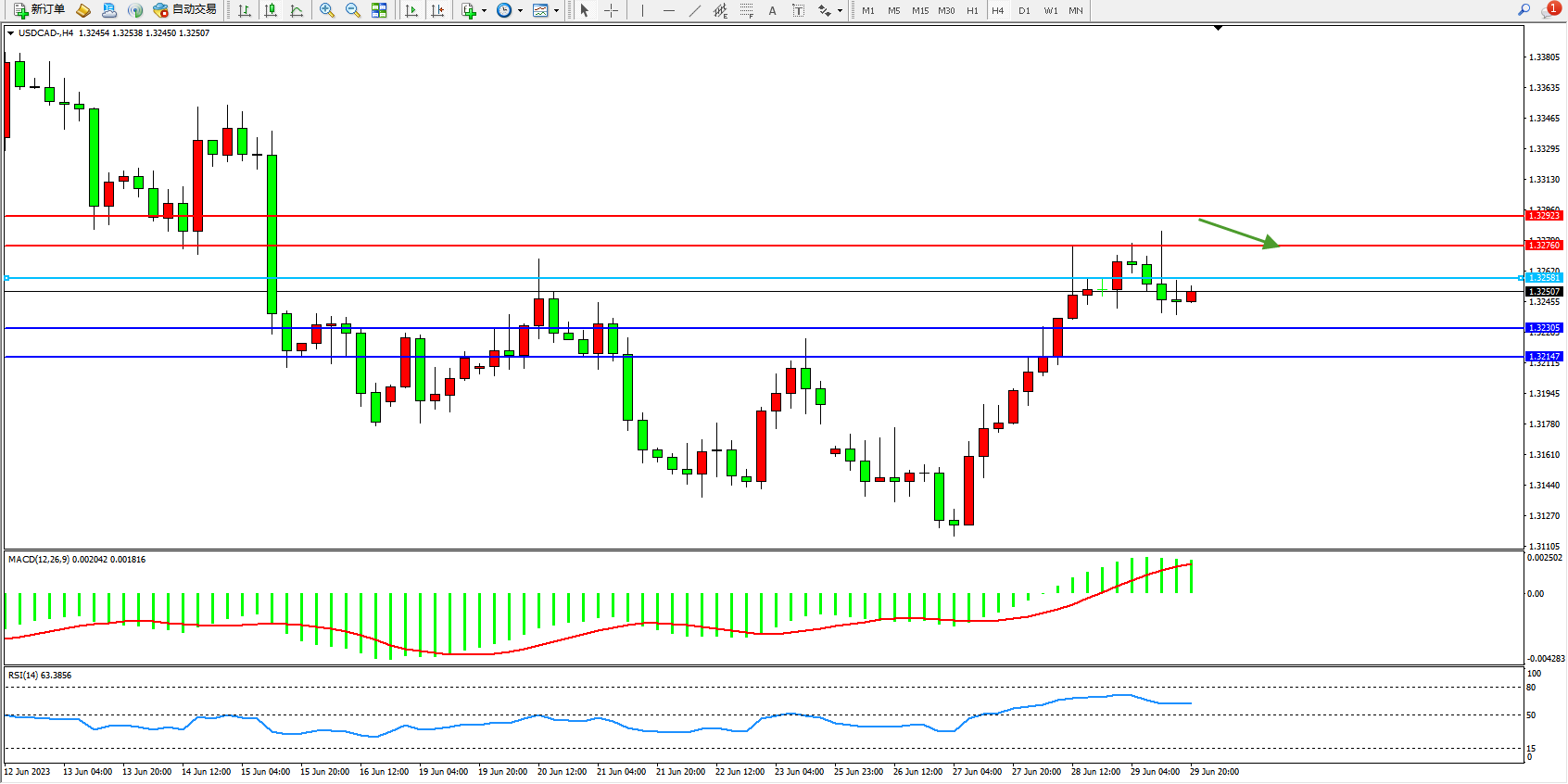 美元兑加元维持1.32507附近震荡,面对油价下跌,沙特阿拉伯本月承诺在OPEC+达成2024年限制供应的更广泛协议的基础上,大幅削减7月产量。美国能源公司上周自2020年7月以来连续第八周削减了石油和天然气钻井平台数量。