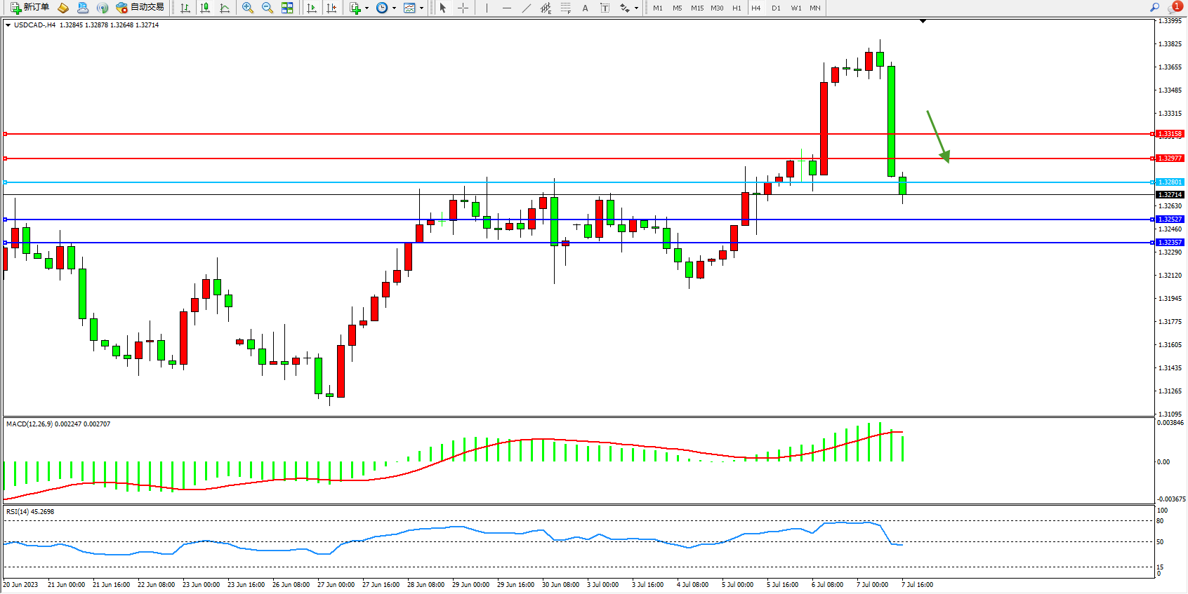 美元兑加元维持1.32714附近震荡,加拿大最新的就业数据和近期的经济指标一样,描绘了一幅喜忧参半的画面,但可能仍不足以决定性地关闭进一步加息的大门。6月份失业率连续第二个月上升,达到5.4%,而普遍预期为5.3%。这是一年多来的最高水平,尽管仍低于大流行前的水平。
