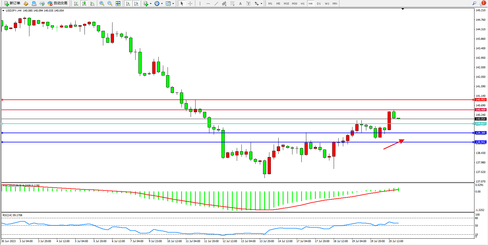 阻力位:140.469  140.953