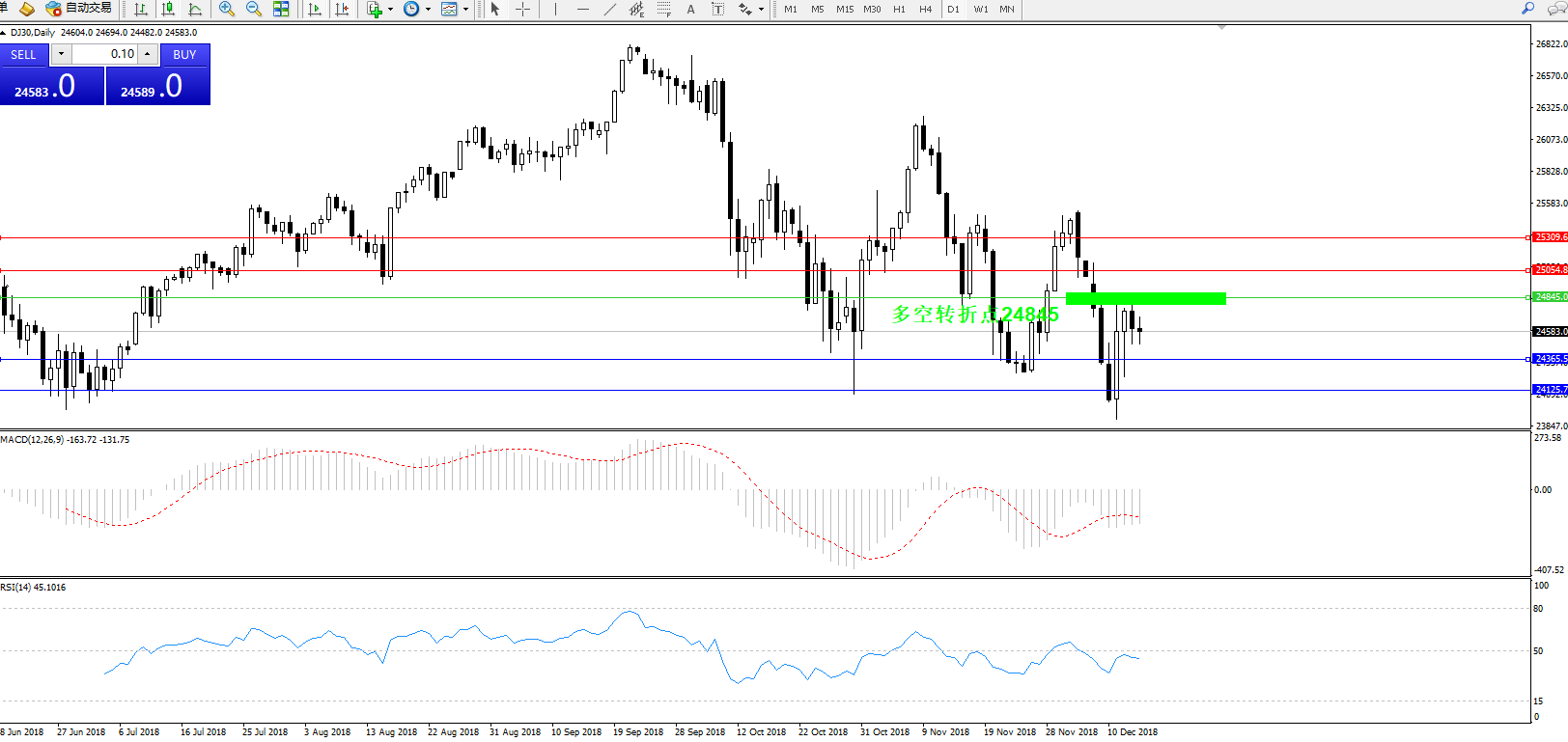 道琼斯指数DJ30——日K线图显示: