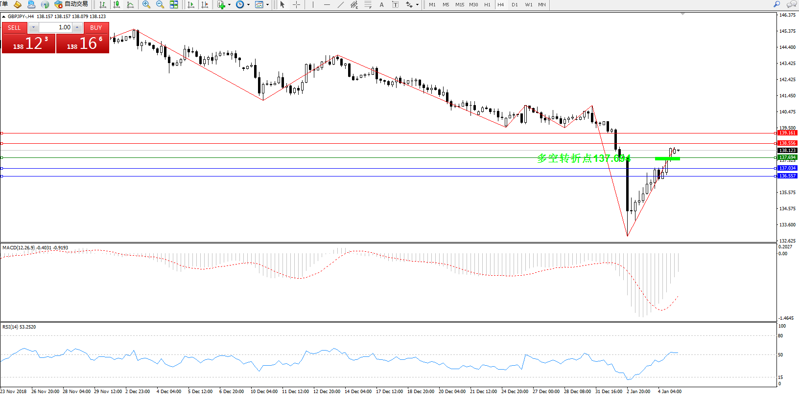 技术点评:V型上扬,MACD指标处于0轴下方强势拉升状态,RSI指标突破50均衡线压制后平移;