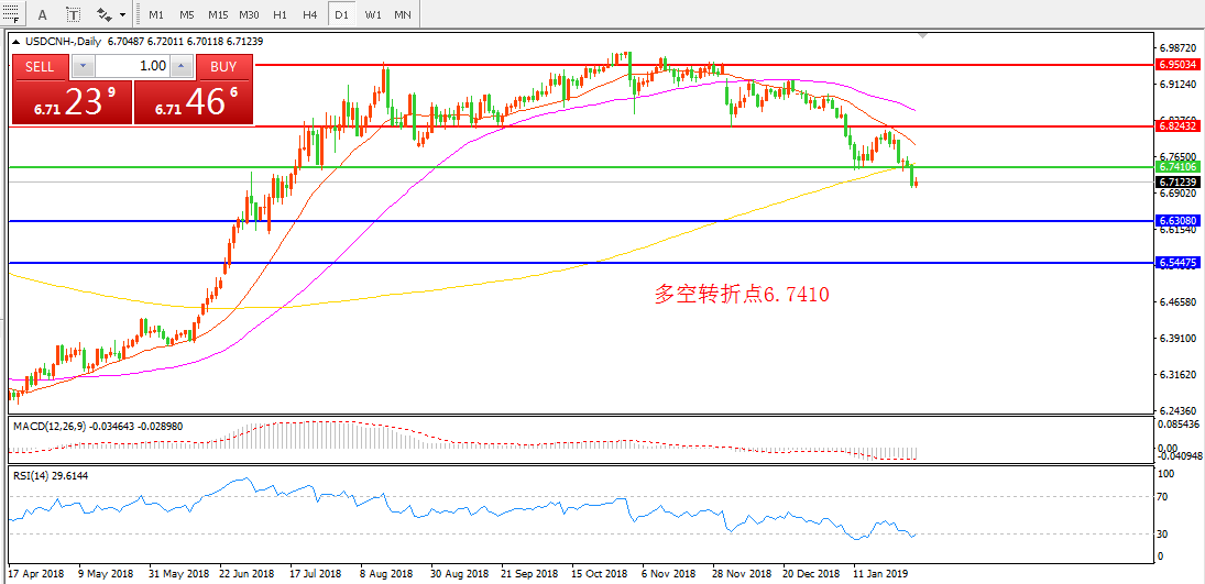 交易策略:在6.7410之下看跌,目标6.6308 6.5447
