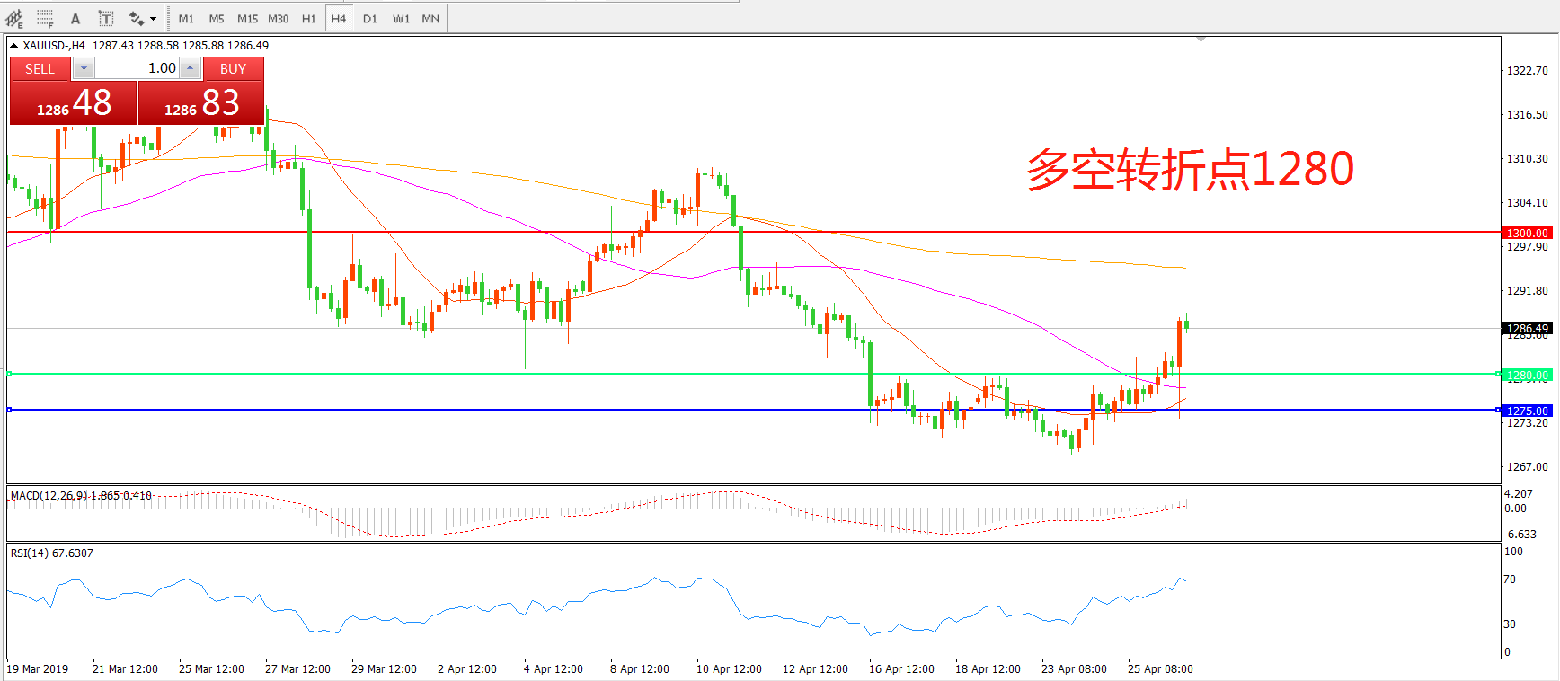多空转折点:1280.00