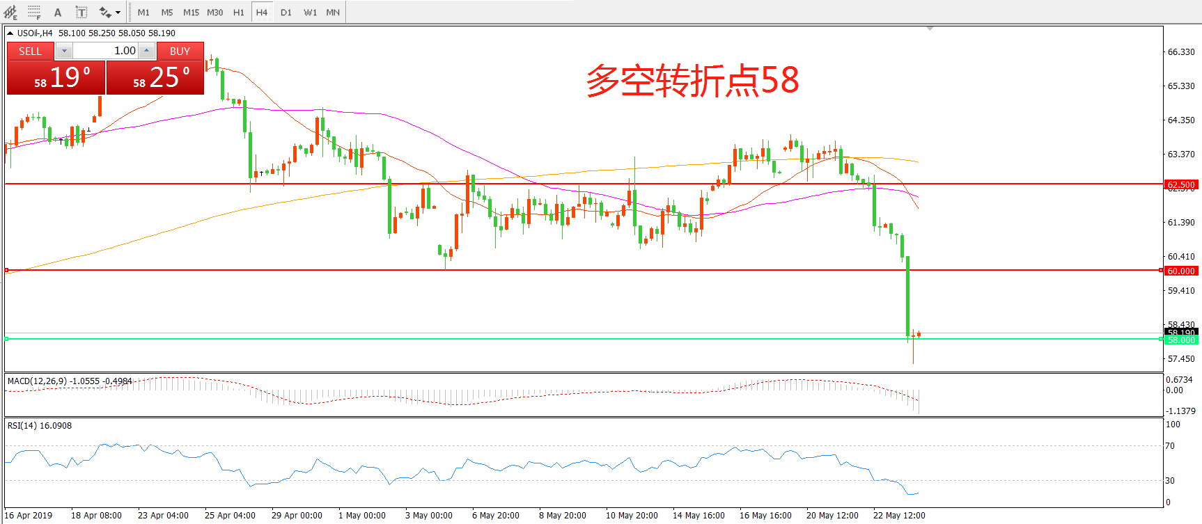 周四(5月23日),在EIA库存激增、全球经济放缓以及股市抛售等因素的影响,美布两油惨遭血洗,美油跌幅一度扩大到6.66%,创3月13日以来新低。全球市场遭遇黑色星期四,风险资产纷纷走低,避险资产受到市场青睐。中美贸易摩擦及英国脱欧再生变故为全球经济的发展蒙上了一层阴影。