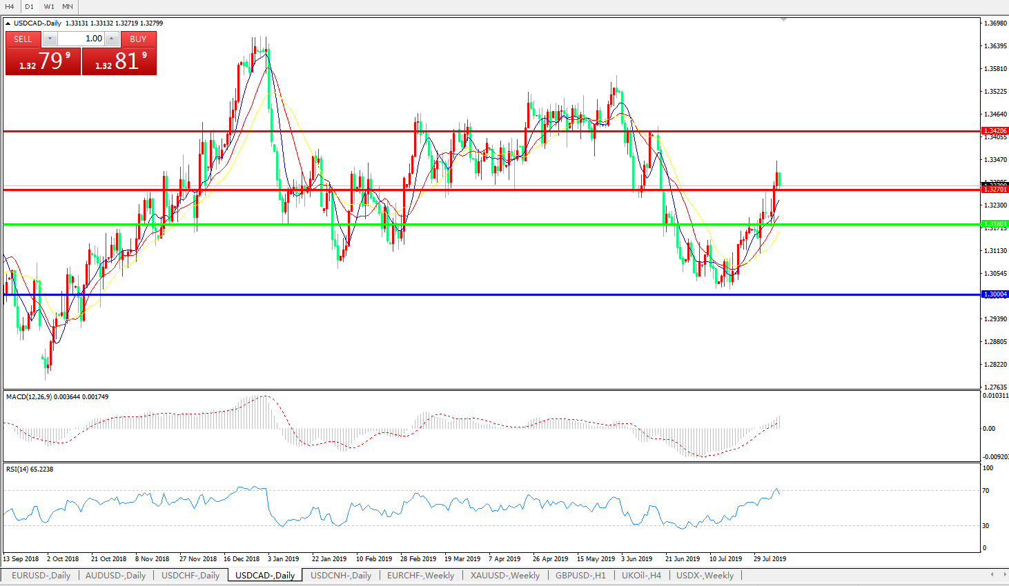 美元兑加元在周三北美时段早盘继续走强,升至618日以来七周新高。上周以来,在美元走强同时,全球贸易局势却再度出现变数,这都令商品系货币遭受重挫,就连前期走势异常坚挺的加元都未能幸免;而在周三日内,在新西兰联储意外降息50基点震惊世界之后,投资者纷纷跟风抛售包括加元在内的商品货币,而此后在德国工业生产数据大幅不佳后,油价的进一步跳水更是连累石油系货币加元加速下跌,而美股在隔夜反弹之后的再度暴跌,也令风险情绪雪上加霜。市场正在等待此后的加拿大PMI数据以及美国EIA原油库存,若数据不够亮眼,美元兑加元仍有进一步上行的空间,可能冲击前期1.3430一线的阶段高位