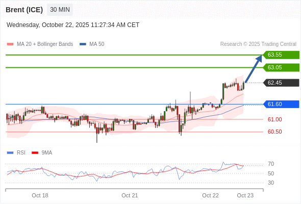 在 61.60 之上,看涨,目标价位为 63.05 ,然后为 63.55 。