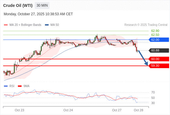 在 62.00 之下,看跌,目标价位为 60.00 ,然后为 59.30 。
