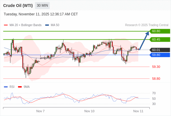 在 59.80 之上,看涨,目标价位为 60.45 ,然后为 60.80 。