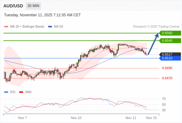在 0.6510 之上,看涨,目标价位为 0.6545 ,然后为 0.6560 。