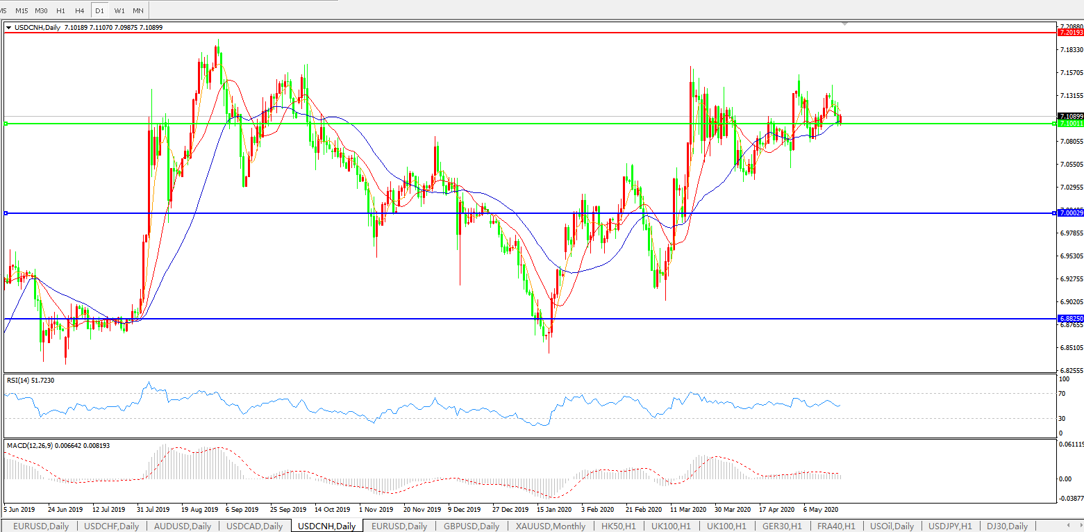 美元兑人民币USDCNH    日线图: