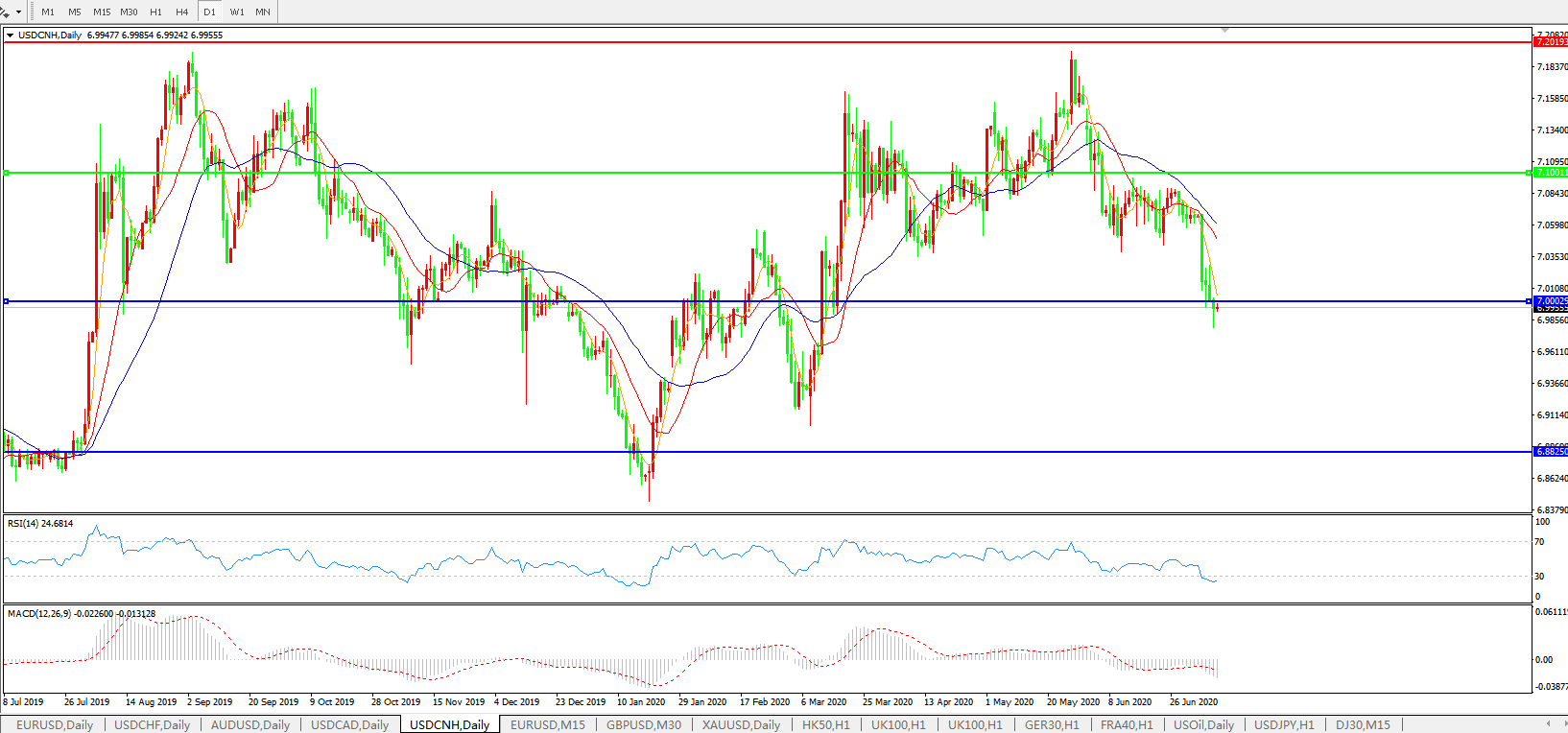 交易策略: 在7.1000之下,看跌,目标价位为7.0000,然后为6.8820。