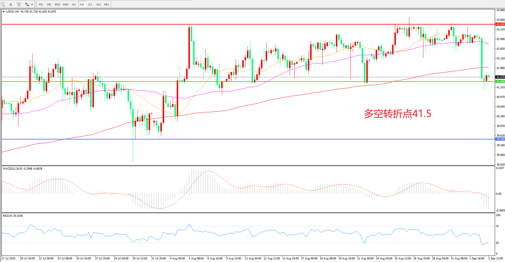 周三(9月2日),原油价格一改往日纠结,EIA数据的利好仅仅让油价短线反弹了0.4美金,随后空头再次发力,美国WTI原油大幅下挫,收报41.67美元/桶。飓风在影响美国原油产量的同时也影响了需求,后续仍需持续关注市场的供需来获得进一步的讯息。