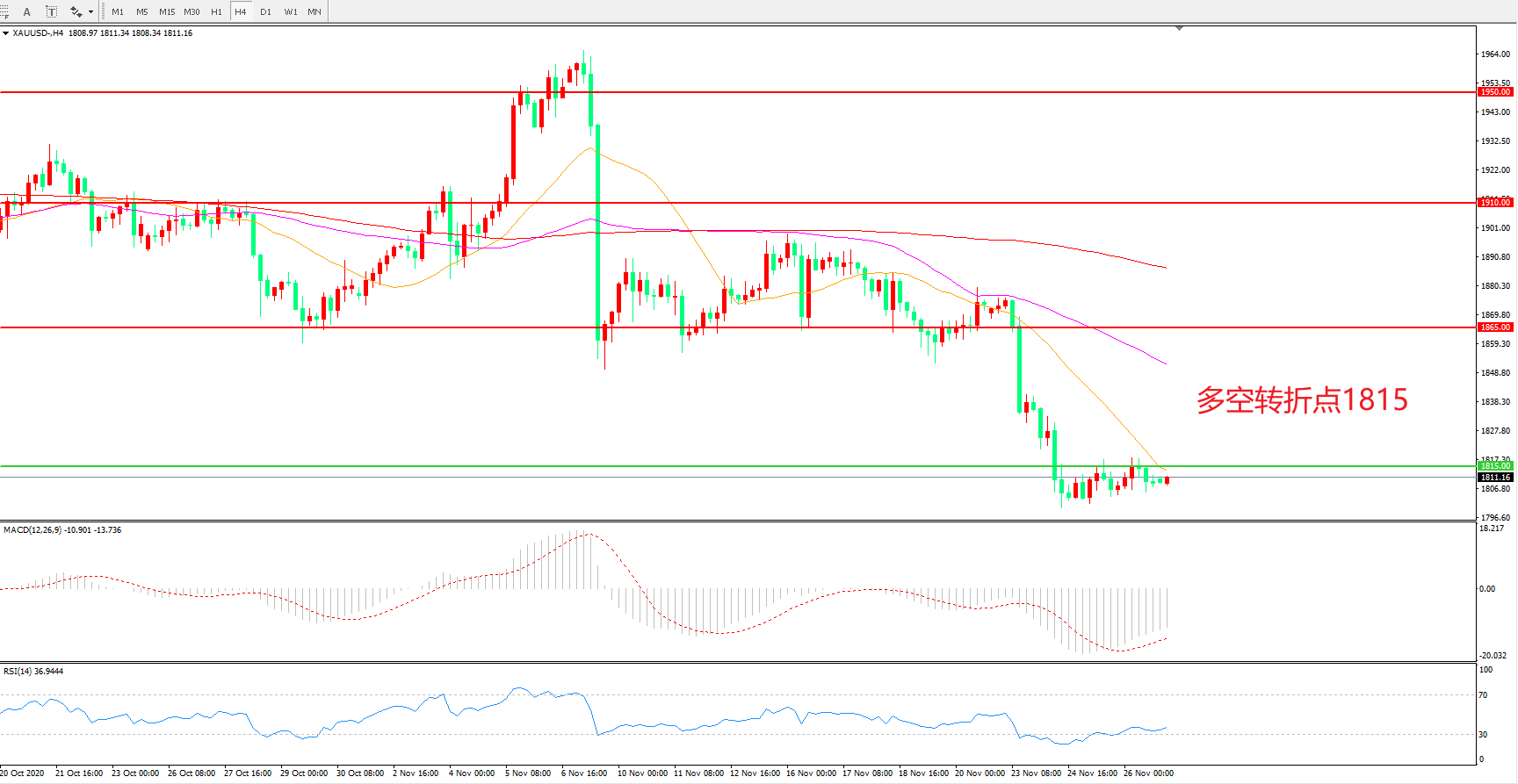 交易策略:在1815.00之下看跌,目标1766.00 1705.00