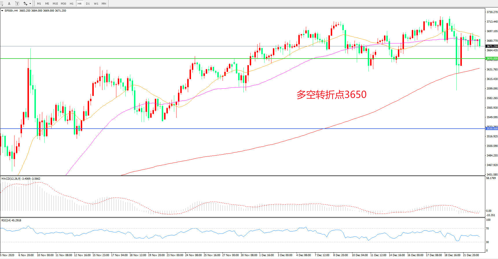 周二(12月22日),因美国国会通过新一轮刺激计划,提升了投资者的风险偏好情绪,但英国部分地区新冠病毒传播速度近日加快,仍令市场感到担忧,标普500延续高位震荡,收报3683点。标普500的11大板块中,仅有信息技术和房地产两个板块收涨,大型科技股中,苹果、奈飞和微软收涨,Facebook跌逾2%。