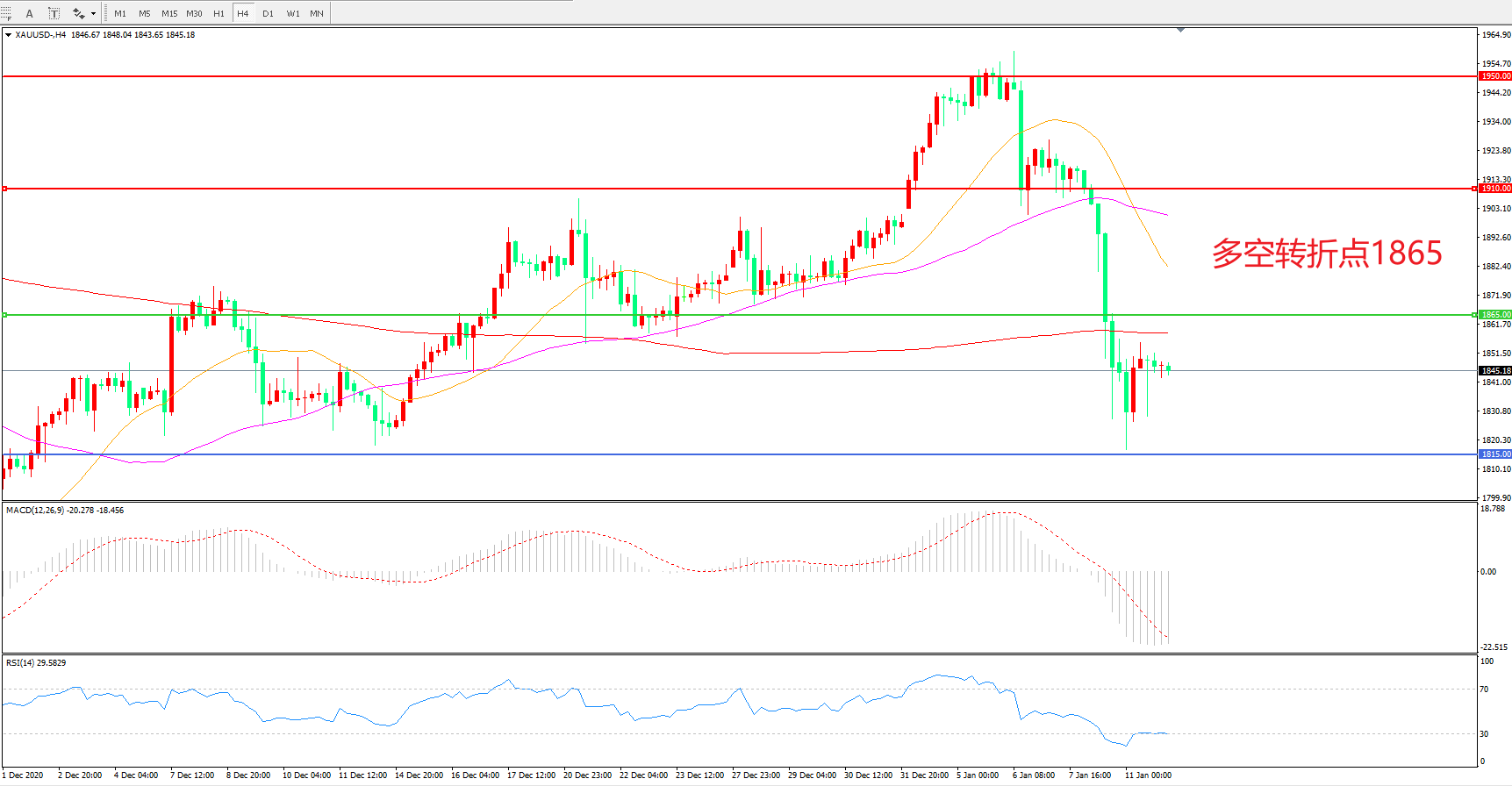 交易策略:在1865.00之下看跌,目标1815.00 1765.00