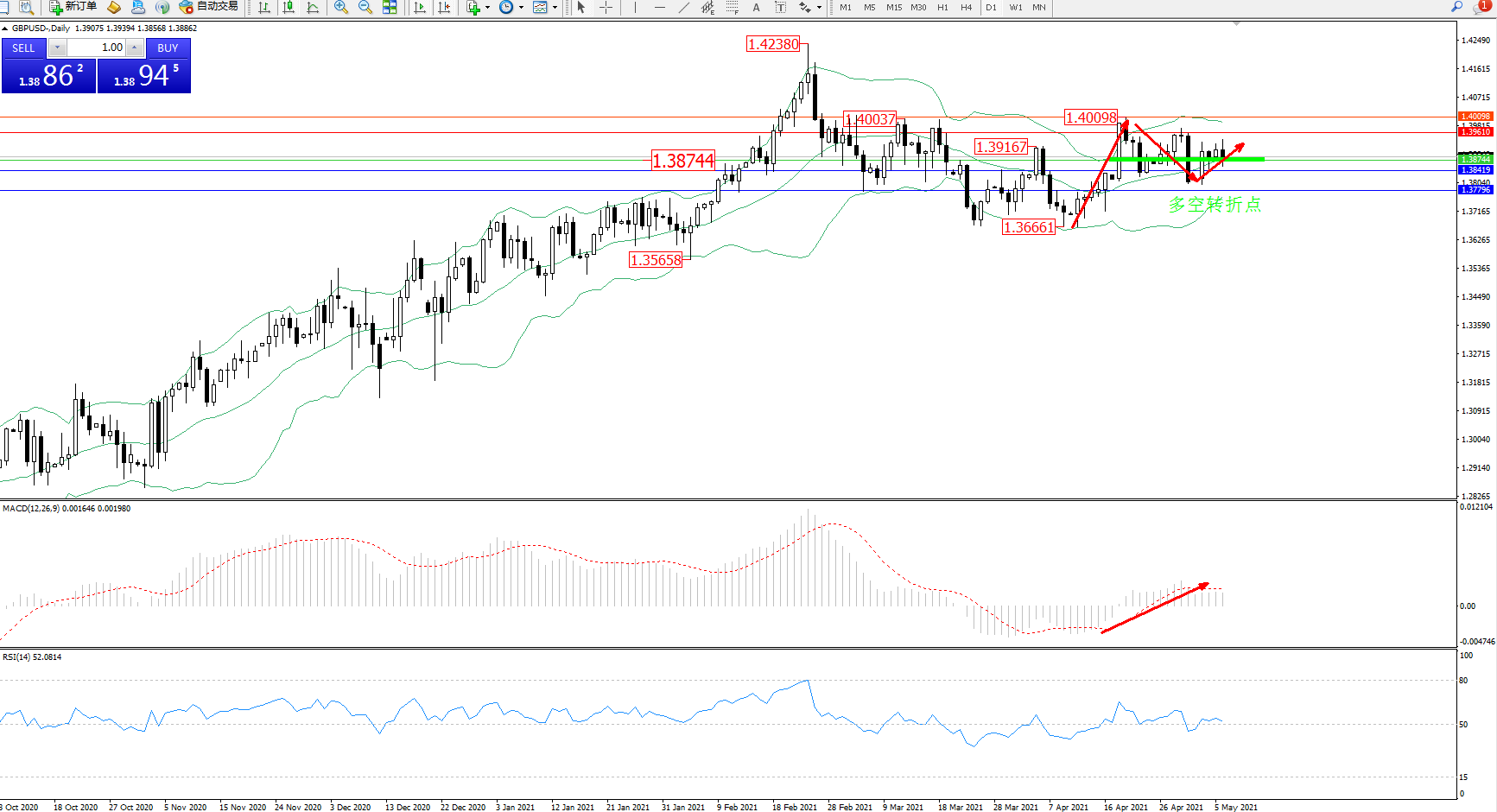 交易策略:1.38744上方看涨,目标1.39610、1.40098