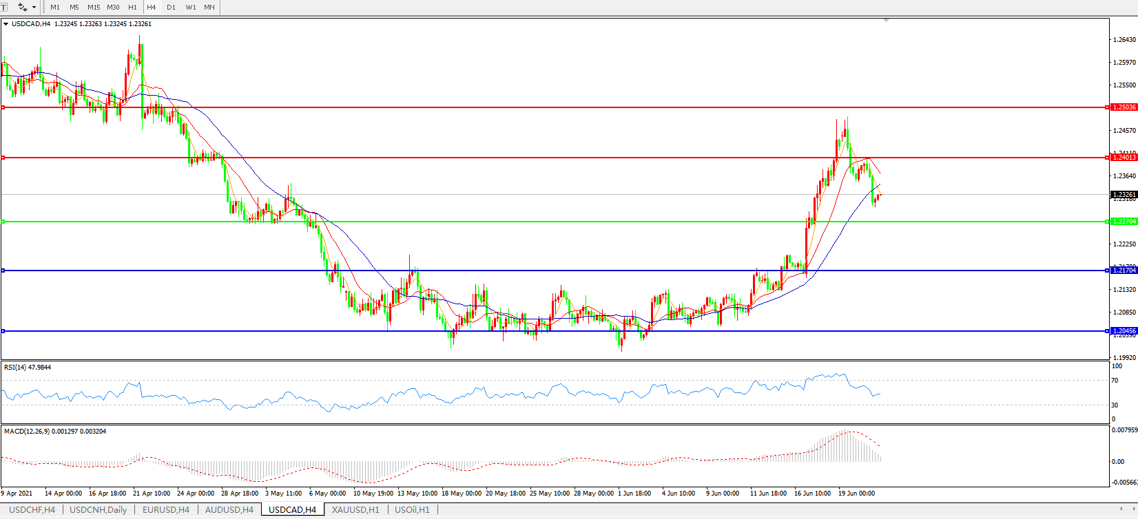 美元兑加元USDCAD    4小时图: