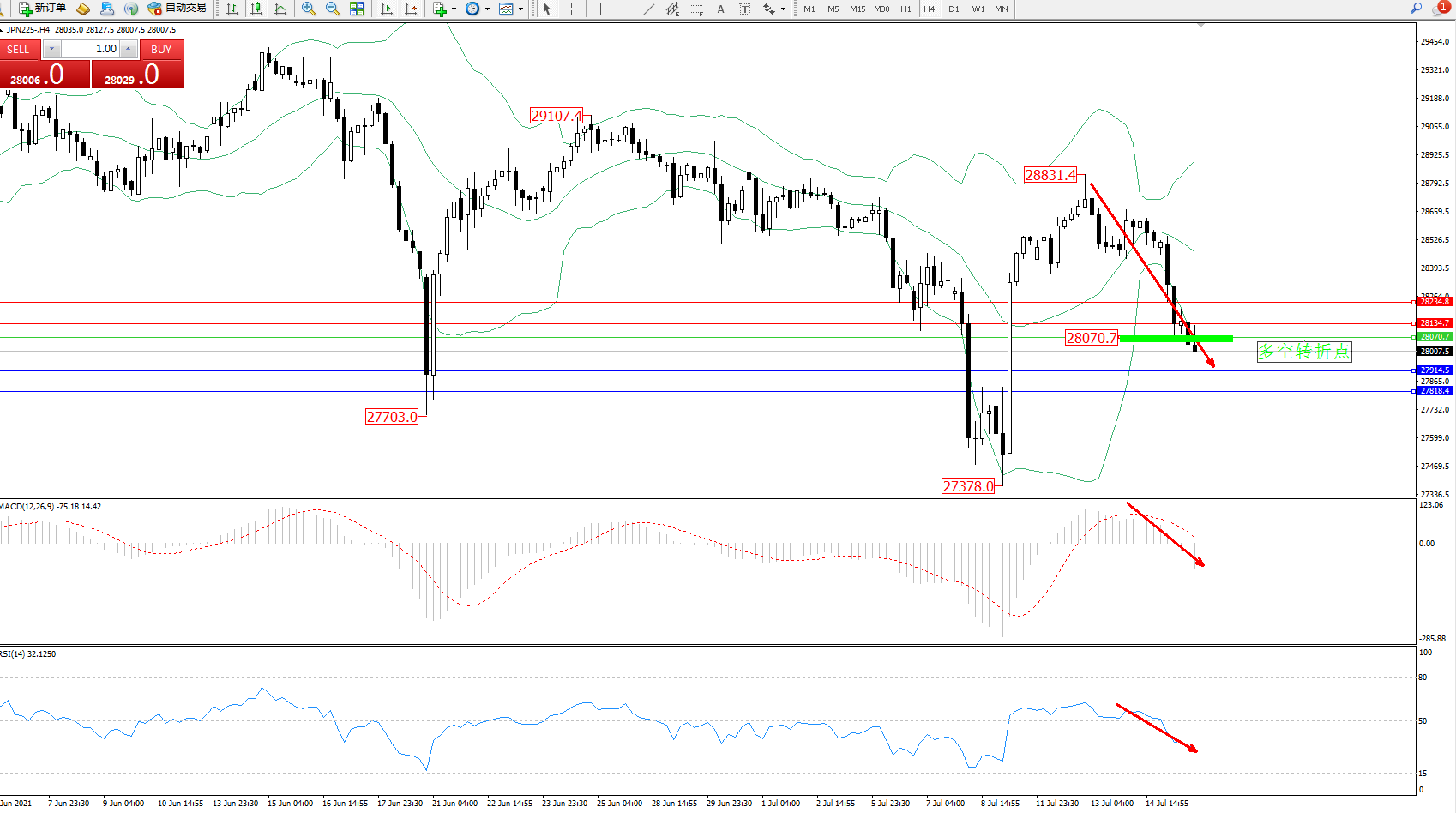 日经225指数7月15日(周四)收盘下跌346.99点,跌幅1.21%,报28261.50点。日本首相菅义伟:将全面采取措施以加强边境防控,保护人民生命安全。日本媒体援引知情人士的话报道称,将可能参加7月23日东京奥运会开幕式的嘉宾人数或减少到1000人以下,不包括运动员。一名运动员、一名奥运会工作人员、四名东京奥运会承包商新冠检测呈阳性,新冠检测呈阳性的运动员是东京奥运会监测下的首例阳性病例。