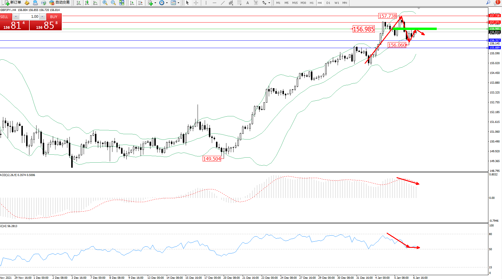 技术点评:多头动力延续布林带指标通道中上轨区间持续震荡上扬,高位抵达157.738位置附近遇阻回撤,纠结于布林带指标中轨附近窄幅震荡,短期高位回调走势或将弱势徘徊数日,布林带指标呈收口走势中,MACD指标处于多头区域维持整理缓慢下行,RSI指标处于多头区域维持震荡回撤至50均衡线上側弱势徘徊;
