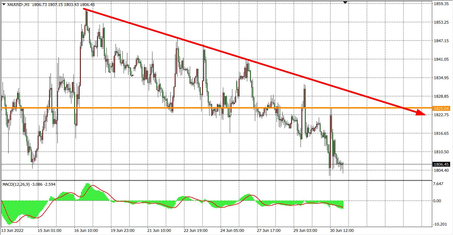 交易策略:在1825.00之下看跌,目标1800.00 1785.00