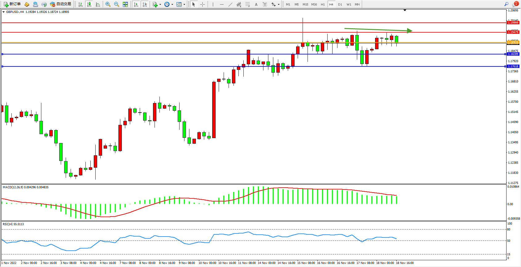 英镑美元GBPUSD ——4小时K线图显示: