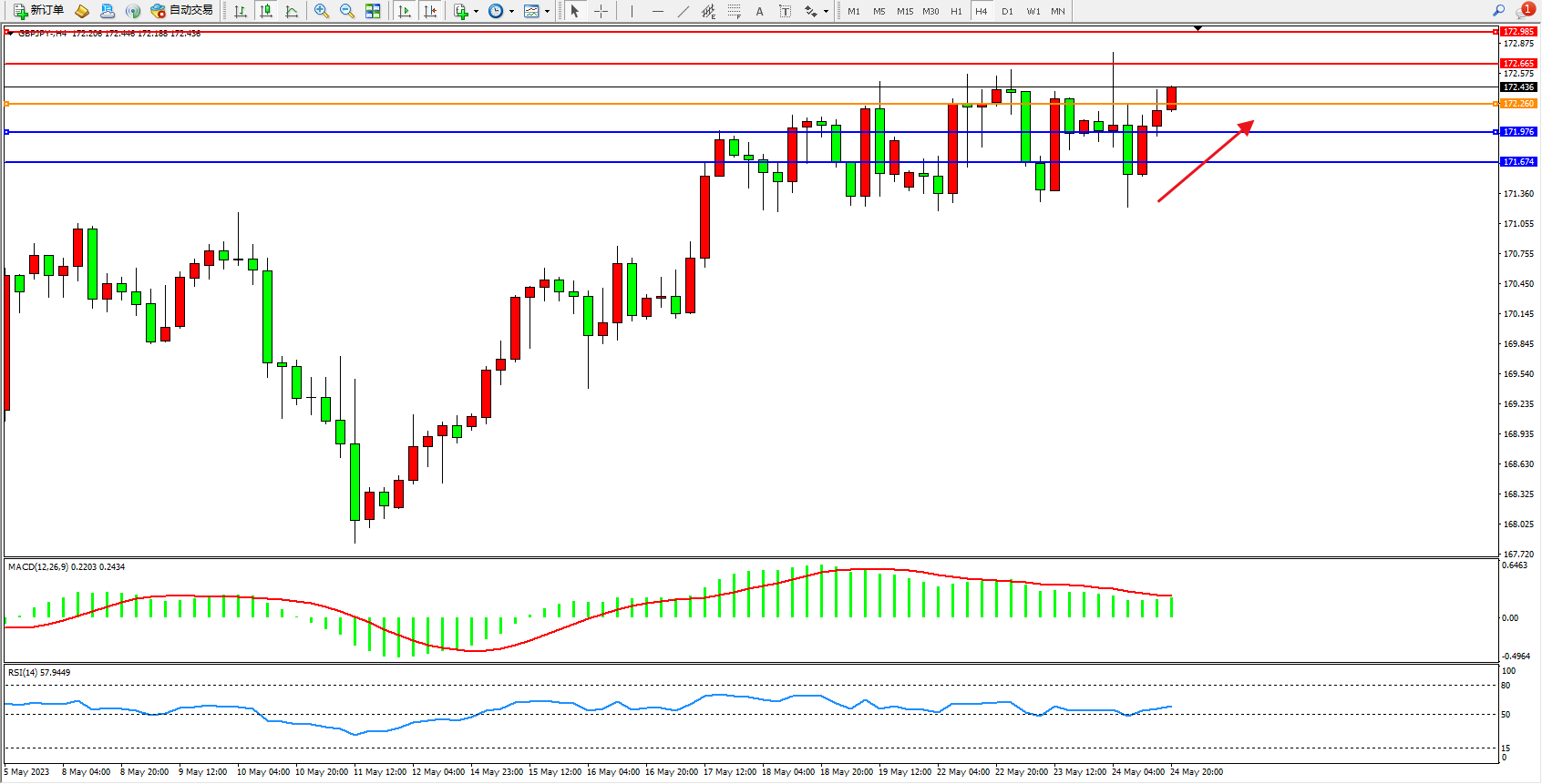 交易策略:172.260上方看涨,目标172.665  172.985