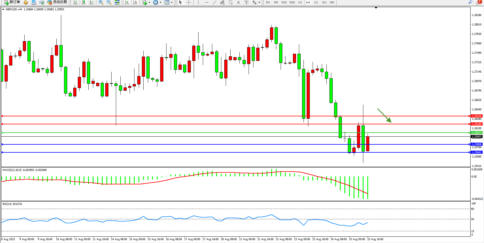 交易策略:1.26023下方看跌,目标1.25808 1.25662
