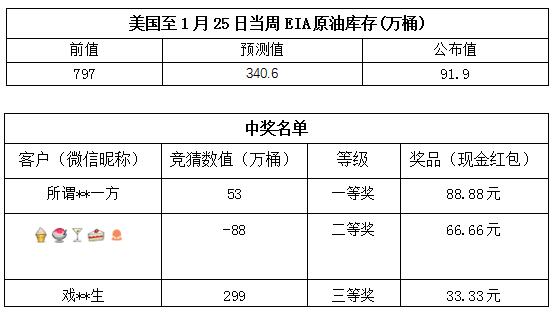 2019年1月第5次“EIA大竞猜活动的中奖结果已出,获奖信息如下: