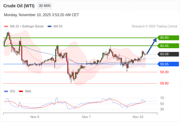 在 59.65 之上,看涨,目标价位为 60.45 ,然后为 60.80 。